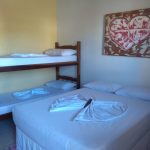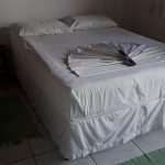 – Na saída, pedimos a gentileza que deixem as janelas do quarto abertas, joguem o lixo no container da pousada e coloquem os lençóis e fronhas utilizados na estada no saco de lavanderia fornecido pela pousada.