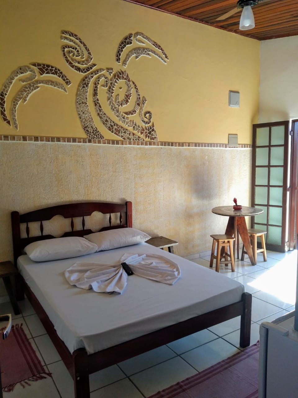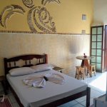 As suítes possuem banheiro privativo, com geladeira, TV, ventilador de teto, estacionamento e wi-fi nas áreas sociais.